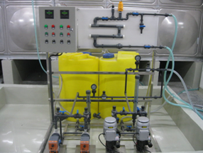 為了防止冷凝器管壁結(jié)垢,我們采用化學(xué)水處理,通常會在水系統(tǒng)中投加緩蝕劑、阻垢劑及殺菌滅藻劑等幾種藥劑。緩蝕劑可在金屬表面形成保護(hù)膜,防止管壁腐蝕;阻垢劑作用于形成垢的成分碳酸鈣等的結(jié)晶體,使其扭曲、錯(cuò)位、變形,最終達(dá)到妨礙垢生長的目的;殺菌滅藻劑對藻類和細(xì)菌有抑制作用,防止其繁殖產(chǎn)生微生物粘泥。
