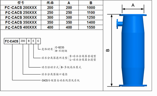 四、FC-CACS冷凝器在線清洗系統(tǒng)選型說明: