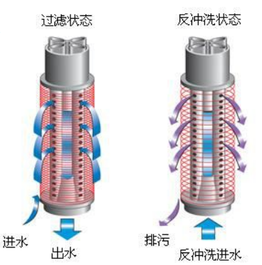 自動(dòng)疊式過(guò)濾器結(jié)構(gòu)簡(jiǎn)單,設(shè)計(jì)理念先進(jìn),自動(dòng)運(yùn)行,自清潔能力極強(qiáng),符合多種應(yīng)用需要。其工作原理為,多個(gè)過(guò)濾單元并聯(lián)運(yùn)行同時(shí)工作。反洗時(shí)保證只有一個(gè)單元在反洗,其它單元處于過(guò)濾狀態(tài),按順序逐一反洗,一個(gè)單元反洗完成后,經(jīng)過(guò)一段駐留時(shí)間后開(kāi)始下一個(gè)單元反洗,這樣保證反洗時(shí)過(guò)濾器不斷流,并且使用系統(tǒng)內(nèi)已過(guò)濾水或外源清潔用水反洗。一體化濾芯總成在過(guò)濾時(shí)自動(dòng)壓緊疊片,反洗時(shí)自動(dòng)松開(kāi)疊片,反洗時(shí)疊片在切向噴射水流的作用下高速旋轉(zhuǎn),在離心力與噴射水沖洗力的作用下,疊片間的雜質(zhì)被沖掉,從排水管排出,濾芯得到徹底清洗。過(guò)濾器共有兩種運(yùn)行狀態(tài):過(guò)濾狀態(tài)和反洗狀態(tài)。